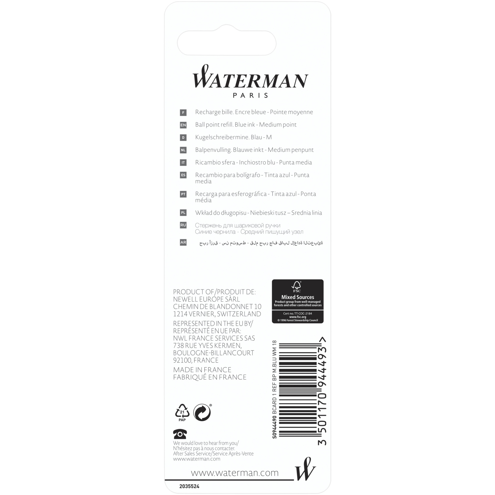 Refill som ger en smidig skrivupplevelse och aldrig torkar ut. Refillen har en skrivlängd på 3500 meter och en spetsstorlek på 0,7 mm (medium). Förpackad på ett blisterkort.